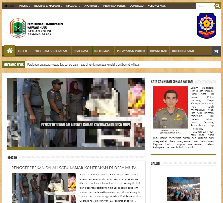 Jasa Pembuatan website satuan polisi pamong praja kabupaten kapuas hulu. Website satpol pp kabupaten kapuas hulu menampilkan berita terbaru seputar kinerja satuan polisi pamong praja. satuan polisi pamong praja kabupaten selalu mengupdate berita keamanan & ketertiban sosial di wilayah kabupaten kapuas hulu.